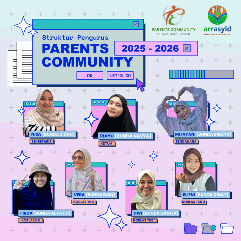 Melalui Parents Community, kami membangun komunikasi yang positif, partisipasi aktif, serta kebersamaan dalam menumbuhkan karakter Islami, kemandirian, dan potensi terbaik anak sesuai fitrahnya.